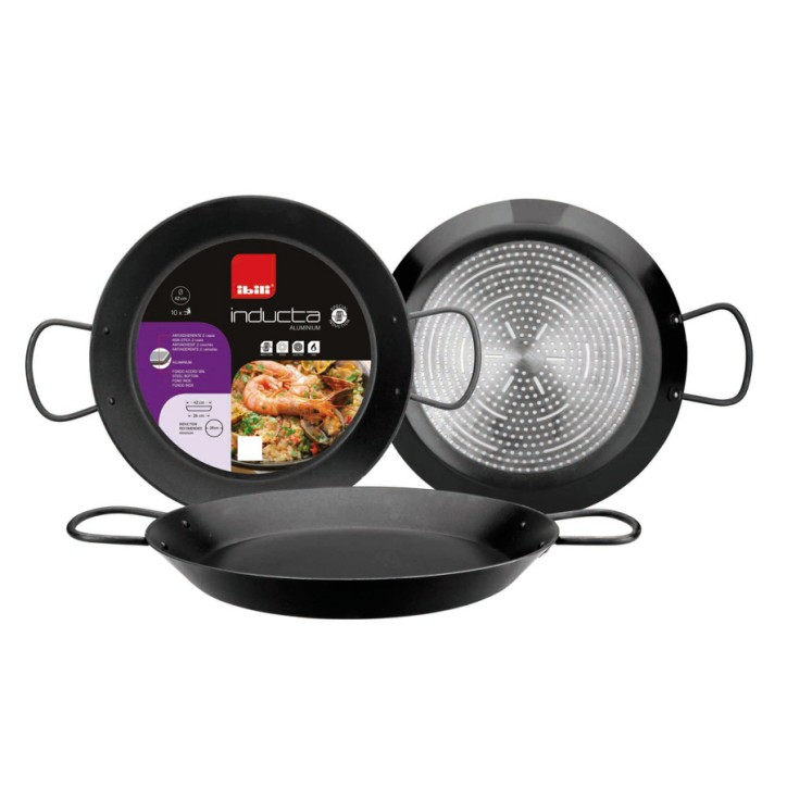 Tarjeta de crédito, PayPal, PayPal aplazado.Prepara paellas deliciosas para toda la familia con la Paellera Inducta, una paellera de aluminio diseñada para funcionar en todo tipo de cocinas, incluyendo placas de inducción. Su revestimiento antiadherente de alta calidad y su construcción robusta la convierten en una opción ideal tanto para chefs experimentados como para principiantes.