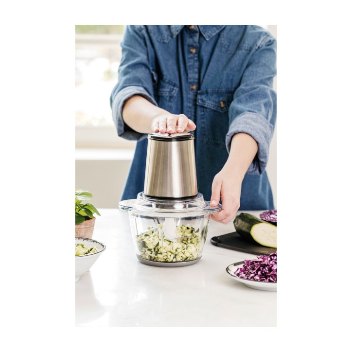 Picadora eléctrica compacta que pica todo tipo de alimentos, como verduras, frutas, jengibre, ajo, cebolla, frutos secos y hierbas.