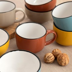 Juego de tazas de desayuno, 40 cl. Fabricadas en cerámica y en 4 colores.