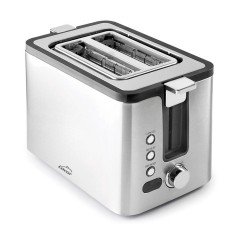 Tarjeta de crédito, PayPal, PayPal aplazado.Con su cuerpo de acero inoxidable, la tostadora SMART de Lacor es un aparato robusto adecuado para un uso diario, válido para desayunos y comidas en cualquier hogar. Cuenta con un regulador giratorio para 6 niveles de tostado, todos homogéneos. Además incorpora una pantalla LED que indica el tiempo de tostado restante, y tres funciones extra: descongelar, recalentar y cancelar el proceso.